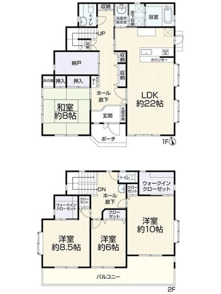 | 設備 | 都市ガス、上水道、下水道、システムキッチン、カウンターキッチン、追焚機能、トイレ2箇所、シャワー、温水洗浄便座、浴室乾燥機、庭、収納スペース、ウォークインクローゼット、床下収納、駐車2台可 | ||