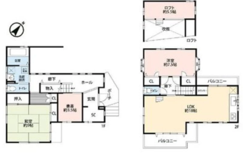 豊富な収納(シューズインクローゼット・書斎・ロフト付き)📦
